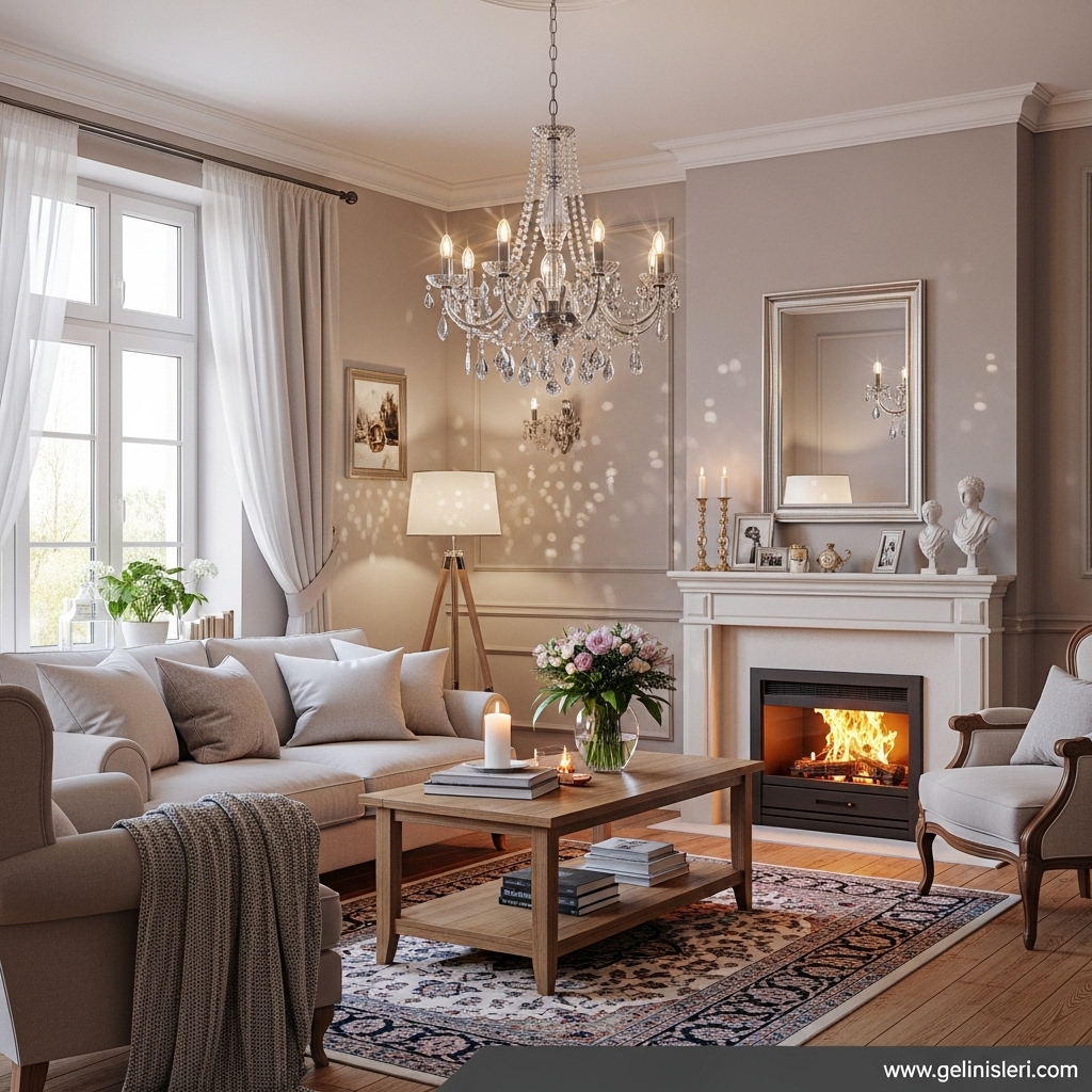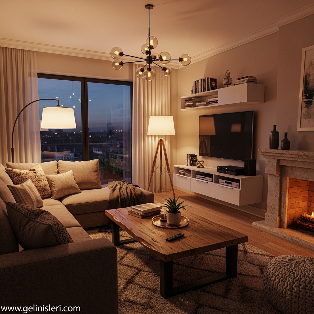 Doğru aydınlatma, oturma odası fikirlerini daha etkileyici hâle getirir ve dekoratif detayların ön plana çıkmasını sağlar.