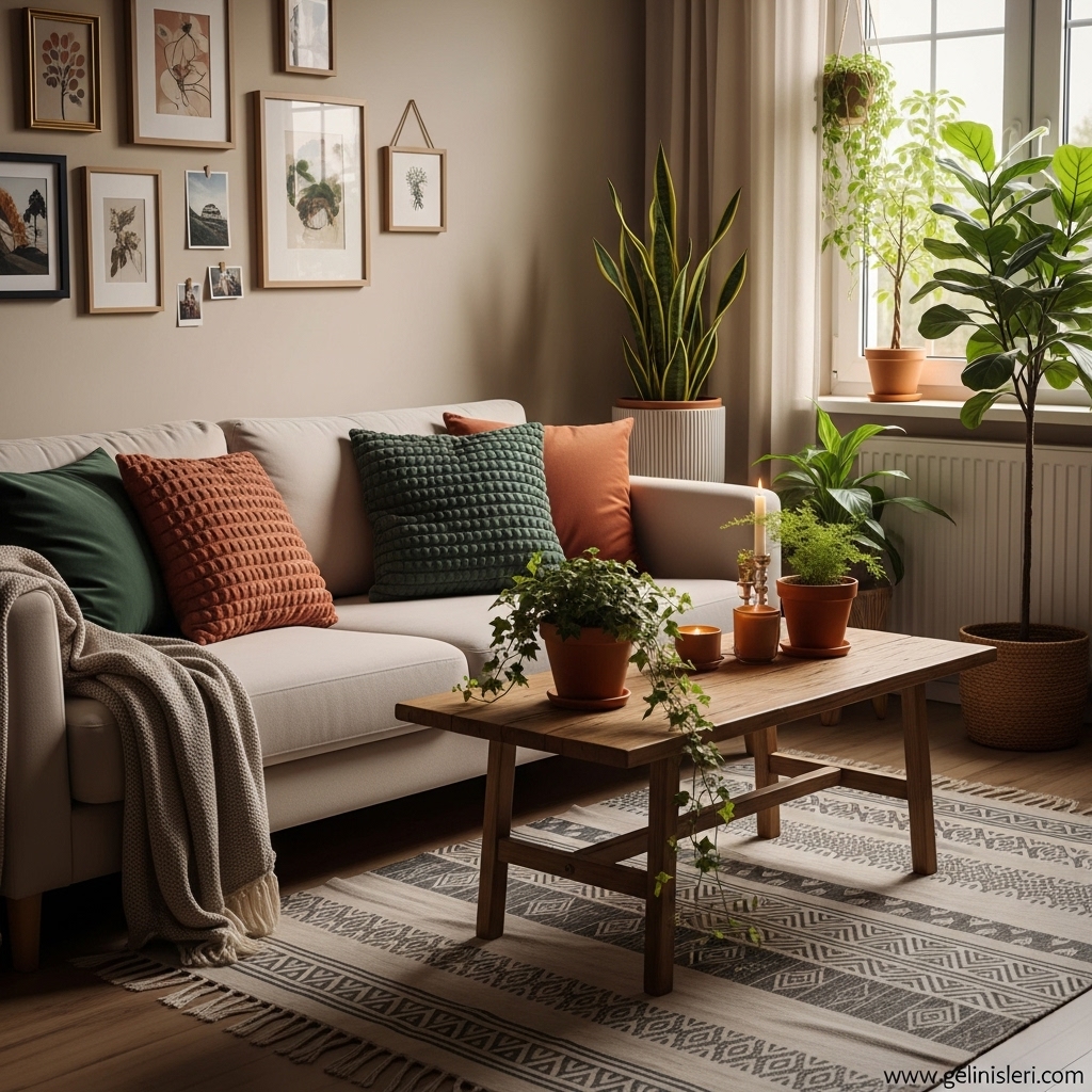 Doğal Dokular ve Bitkilerle Sıcak Bir Ortam