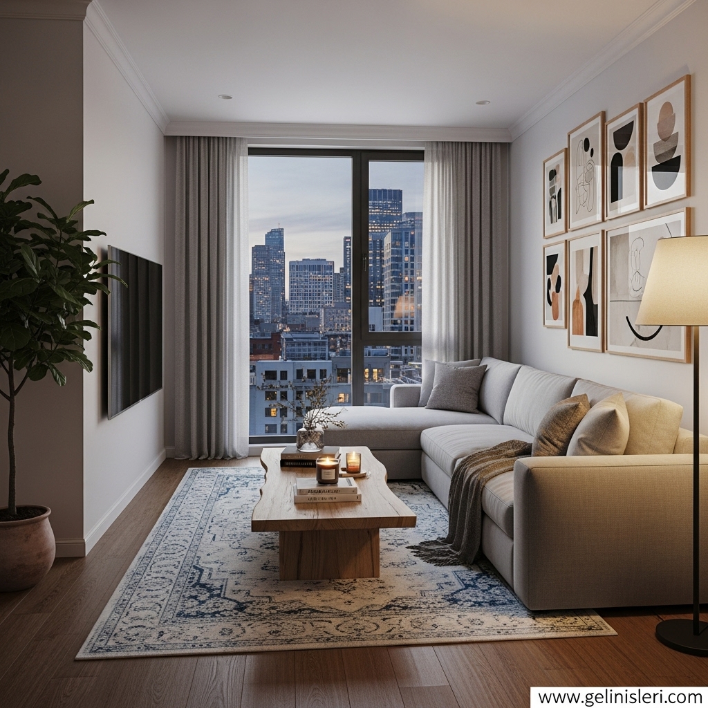 Minimalist yaklaşımlar, küçük oturma odalarında hem düzenli hem de modern bir görünüm sunar.