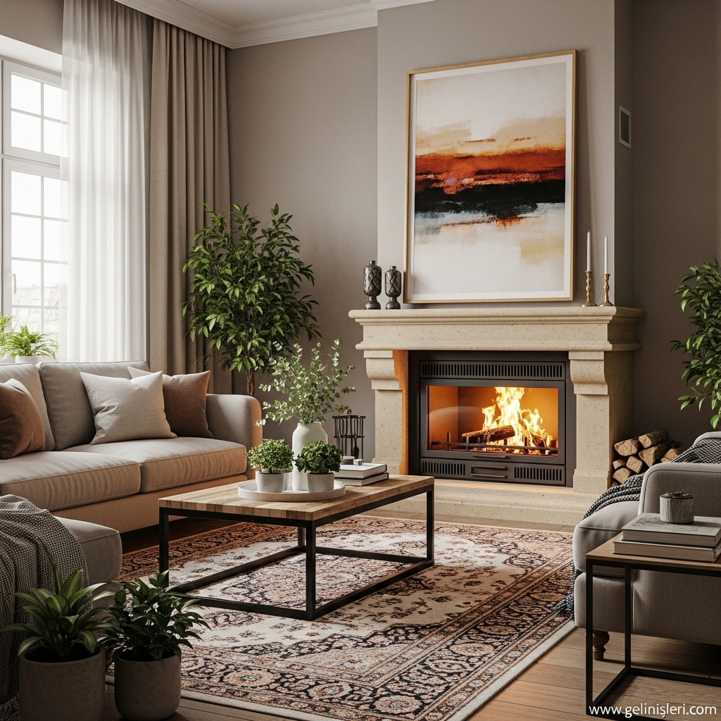Son yıllarda oturma odası dekorasyonunda doğal dokular ön plana çıkmaktadır.