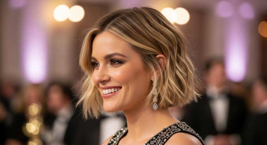 Omuz hizasında veya biraz üstünde biten kısa bob kesimler, altın sarı tonlarla birleştiğinde zarif bir kontrast oluşturur.