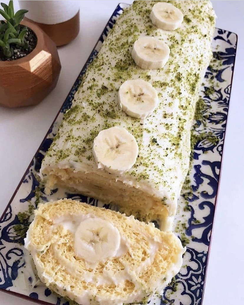 Sonra fırını 170 dereceye ayarlar, hamuru için yumurtaların beyazı ve sarısını ayırırız. Beyazları azıcık tuzla traş köpüğü kıvamına gelene kadar, sarılarını da şekerle güzelce çırparız. Sonra sarıların üstüne beyazı kaşıkla yavaş yavaş ilave ederiz. Alttan üste doğru yavaşça karıştırmalıyız. En son un ve kabartma tozunu da ekleyip kaşıkla yavaşça karıştırırız. Fırın kağıdı serdiğimiz tepsiye hamuru her tarafa eşit olacak şekilde yayar, fırına süreriz. Ne fazla ne de az denecek kadar kontrollü bir şekilde pişmeli. Piştikten sonra biraz ılıyınca başka bir fırın kağıdına ters çevirerek alttaki kağıttan kolayca ayırırız. Sonra kremayı sürer, içine muzları dizer ve çok gevşek olmayacak şekilde sararız. Üzerine artan kremayı yayar, buzdolabına kaldırırız. Soğuyunca süsler, servis ederiz.