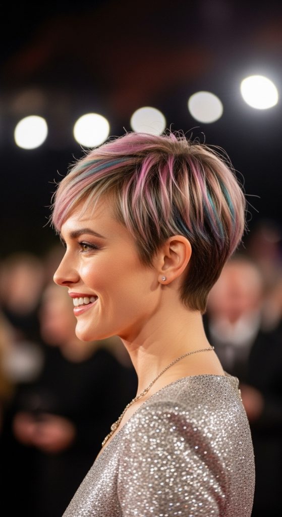 Saç rengini açık tonlara boyamak, pixie kesimin etkisini güçlendirir.